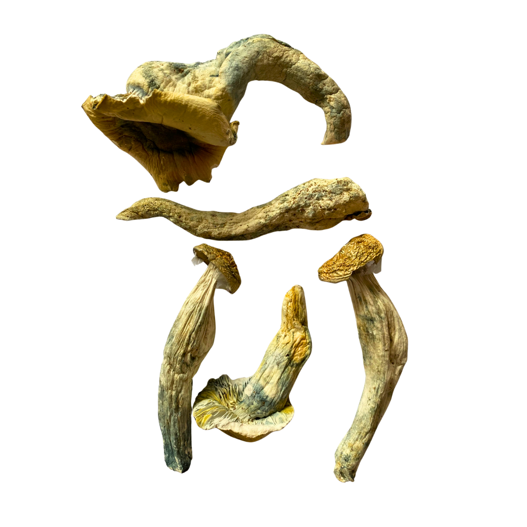 APE (Albino Penis Envy) mushrooms are known for their albino or pale appearance, a characteristic that differentiates it from other strains. It typically has a pale hue and may have a deep blue-tinged cap. It is often described as having a thick, robust stem and a smaller, often bulbous cap. They are considered a rare and highly potent strain, known to provide intense visual and transformative psychedelic experiences. This is a hybrid strain, tracing its lineage back to the Penis Envy strain crossed with Albino A+ and Melmac.