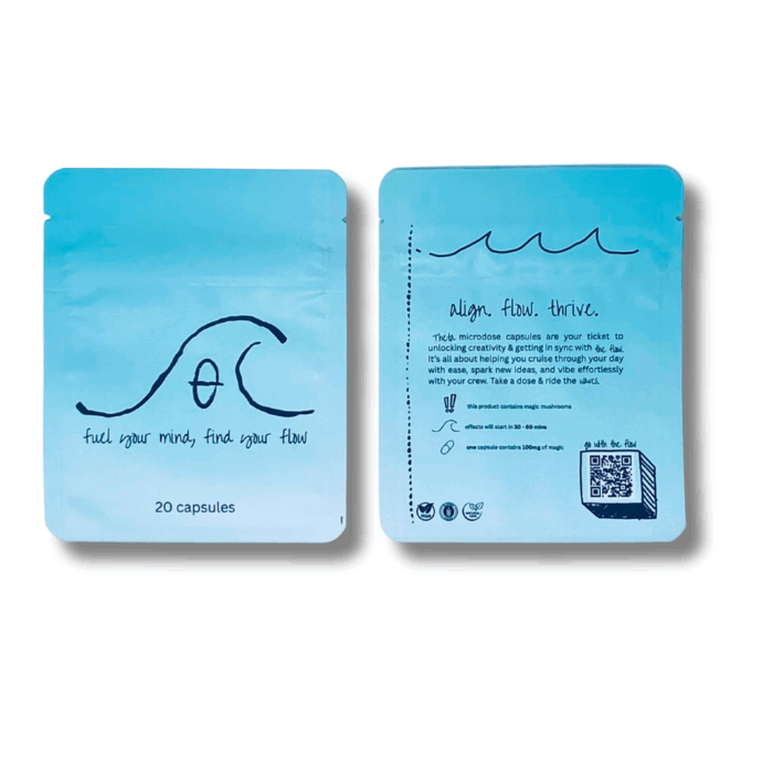 These microdose capsules are a unique dose designed to keep you feeling focused, motivated, and ready to conquer your day. Each vegan capsule delivers a gentle microdose of 100mg ground raw mushroom magic to help you ease into your routine with clarity and confidence — no jitters, no overwhelm, just smooth momentum and task-tackling flow. One pouch contains 20 capsules and is recommended to be taken over the course of one month following a 5 day on/2 day off protocol. It is highly suggested to maintain your micro-dosing regime for 3 consecutive months to solidify the resulting neuroplasticity.